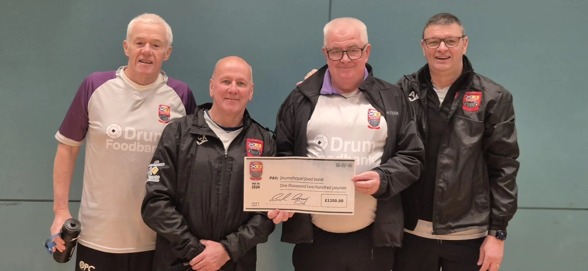 Drumchapel United Walking Football once again demonstrated their community spirit by handing a £1200 cheque to the Drumchapel Food Bank supported by journalist Hugh Keevins.