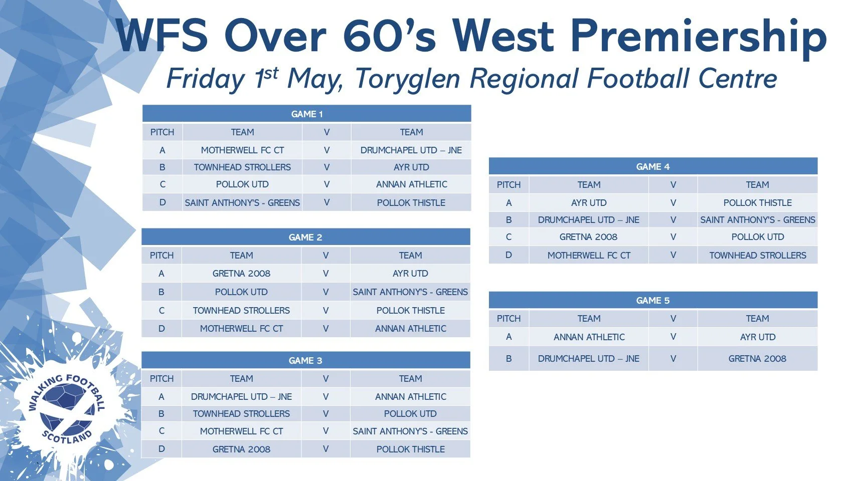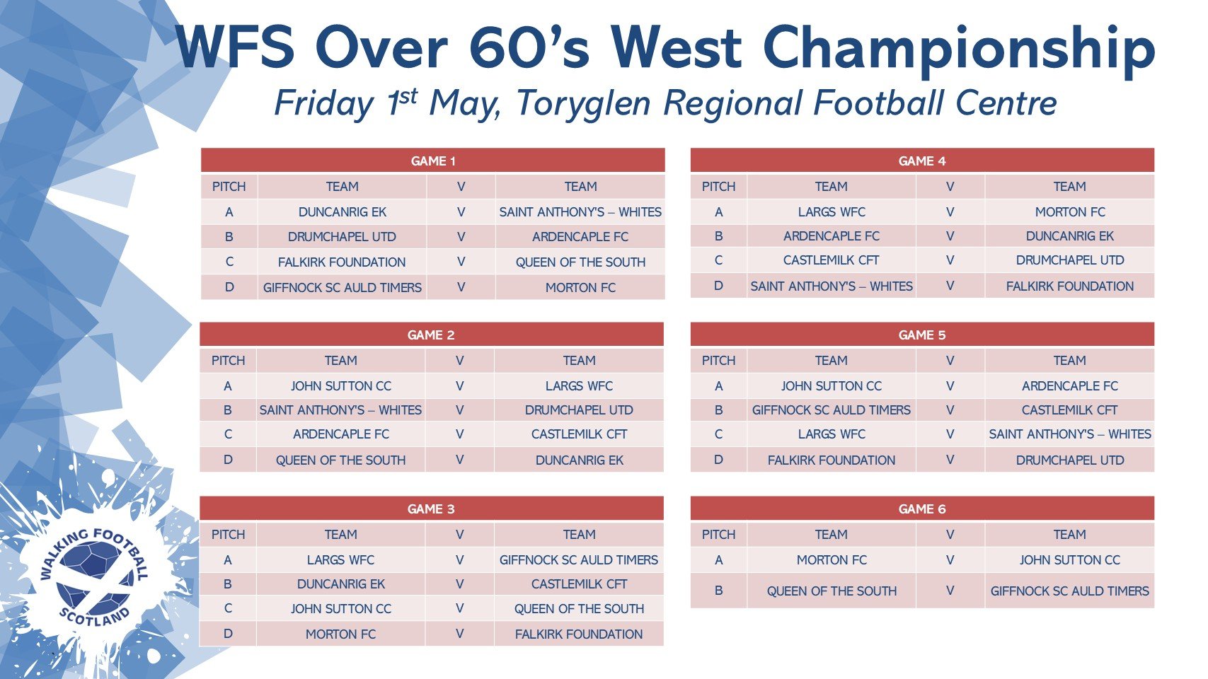 With plenty at stake across both divisions, it’s set to be another exciting night of walking football at Toryglen. We wish all teams the very best. ⚽