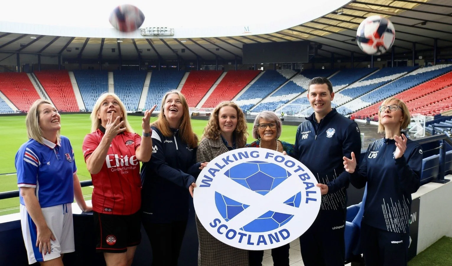 Images attached show Vivienne MacLaren and Matt Ramsay at Hampden to launch the initiative, joined by SWF CEO Aileen Campbell, Women’s Football legend and Walking Football Scotland Patron Rose Reilly, WFS Trustee Linsey Paton-Donaldson and Walking Footballers from Giffnock SC and Rangers FFIT.