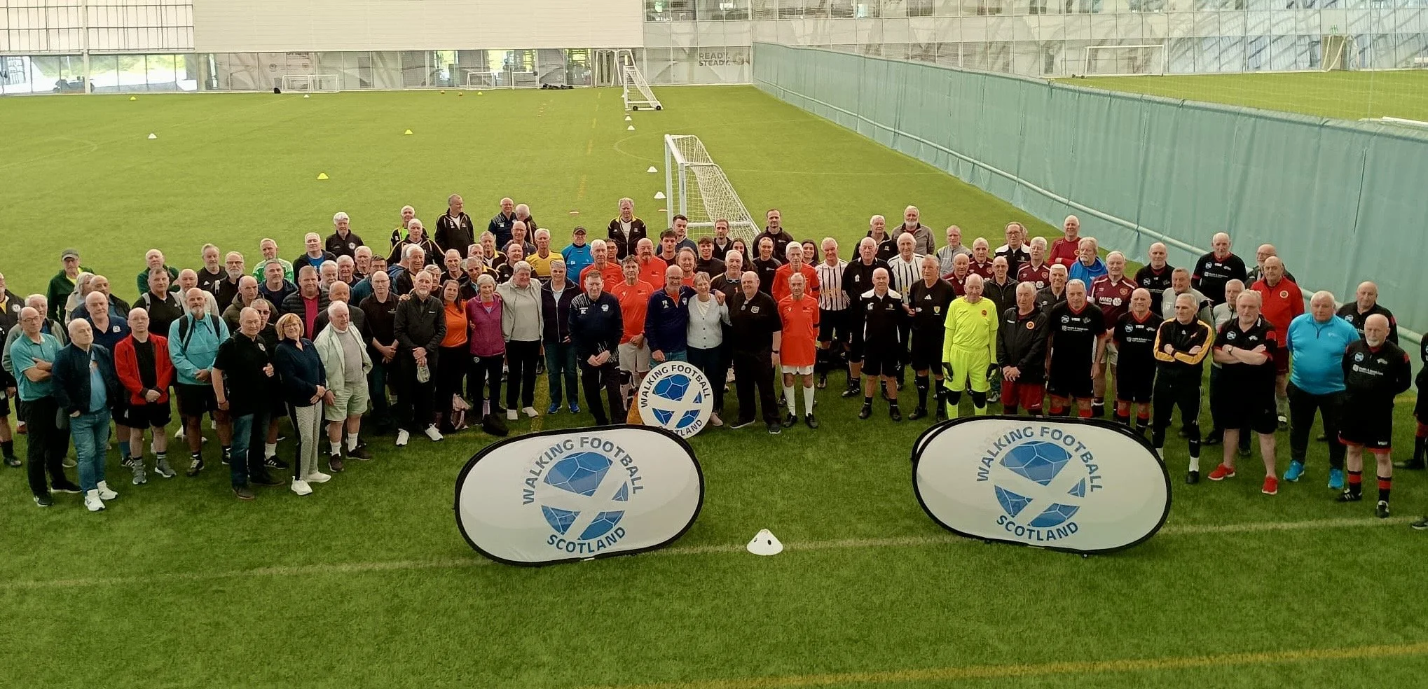 The day began with a minute’s applause in tribute to Gerry Butler, with the Oriam squad, venue staff, and Gerry’s wife Lorna all joining together to honour a man who made such a meaningful impact on walking football in Scotland. It was a fitting and heartfelt moment of reflection.