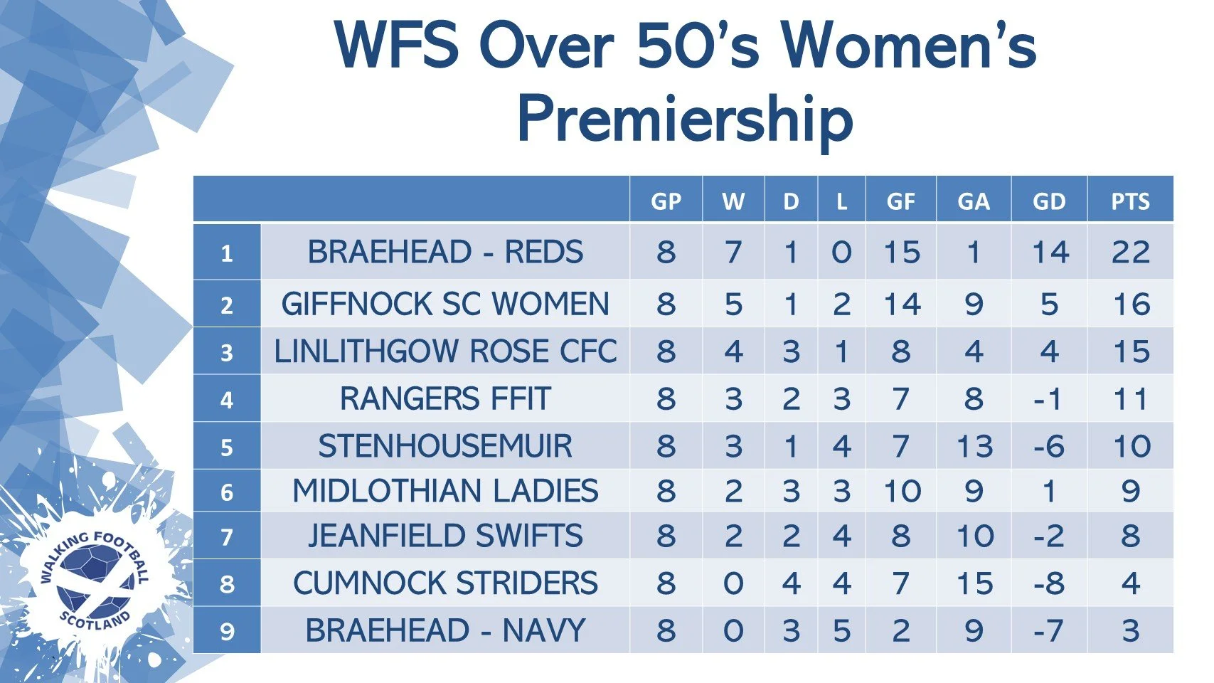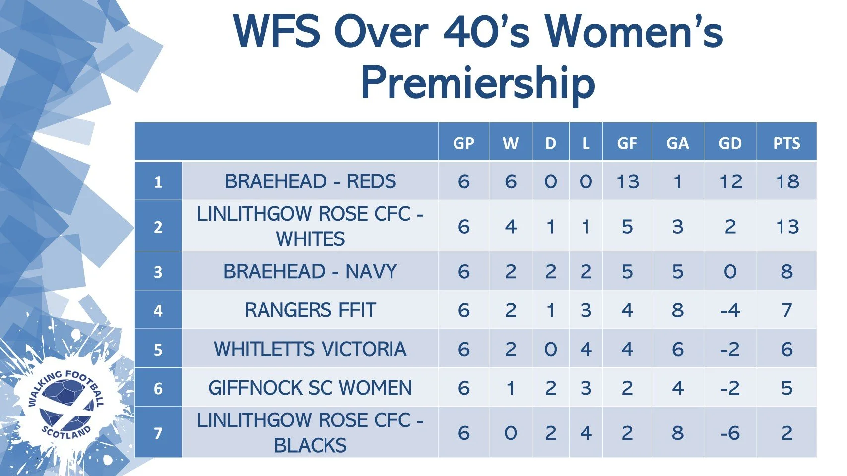 /Walking football action returns this Sunday as the WFS Women’s O40’s Premiership and Championship, along with the Women’s O50’s Premiership, recommence at the Ravenscraig Regional Sports Facility. With tight title races and unbeaten runs on the line, fans can expect a thrilling day of competition.